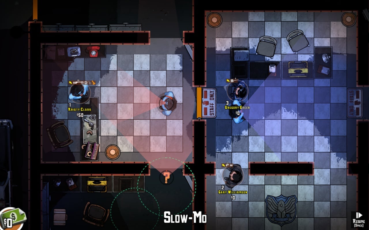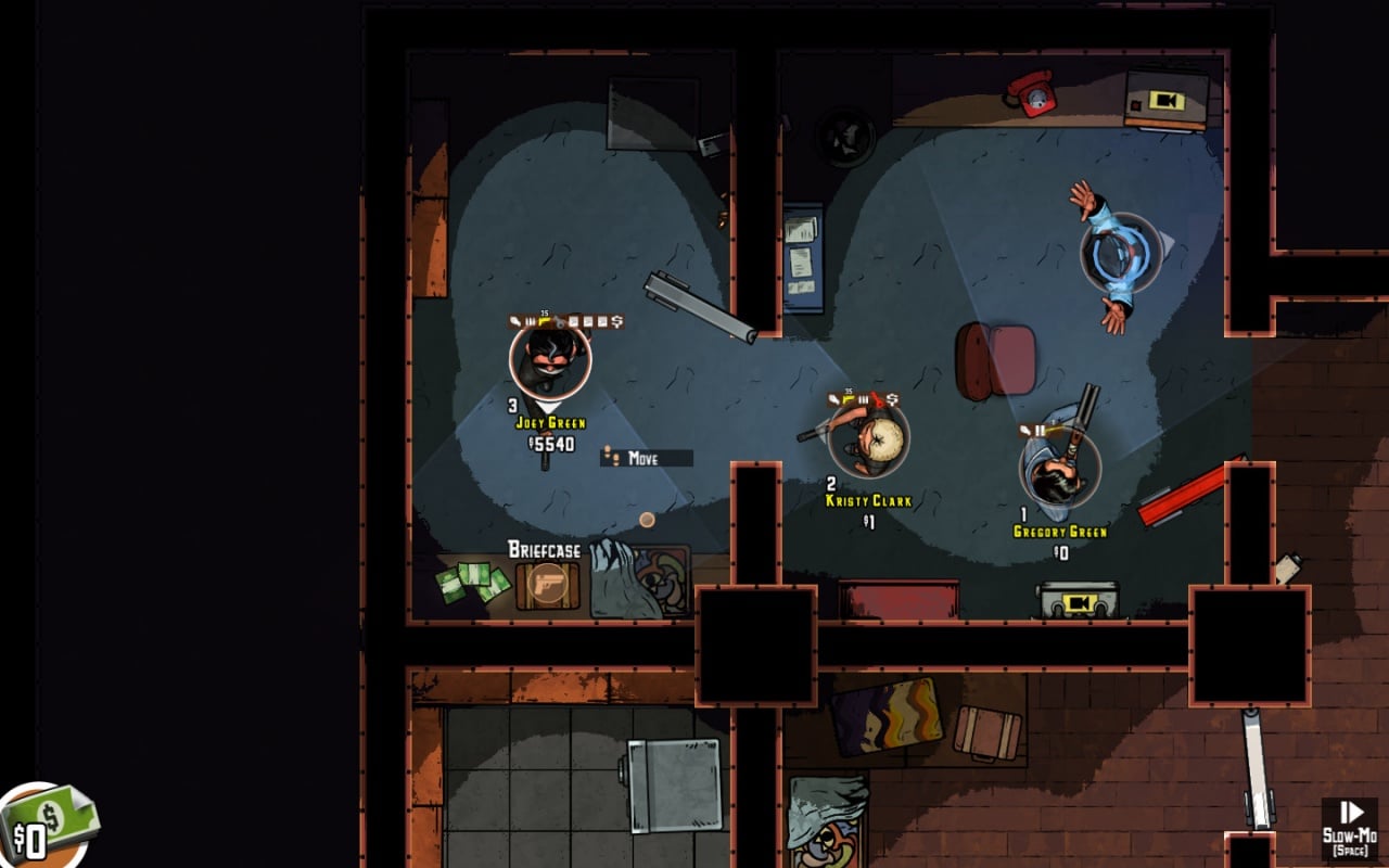 Однопользовательский режим включает в себя 20 разнообразных сценариев, где совершаются различные кражи в отличающихся между собой декорациях. Постепенное увеличение уровня сложности позволяет игроку выучить все механики и разработать наиболее успешные тактики для уничтожения охранников, не желающих отдавать вашей команде драгоценности, деньги и прочее ценное добро. Пользователь может создавать собственные карты и наполнять их охранниками в специальном редакторе, а также, скачивать работы других людей.