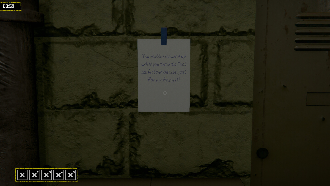 У молчаливого протагониста есть 5 характеристик: голод, жажда, сонливость, гигиена, нужда. Соответственно ему нужно регулярно кушать, пить, спать, мыться и ходить в туалет. Геймплей состоит из брожения по мрачным коридорам в поисках способов удовлетворить эти потребности и вещей, что помогут выбраться обратно на поверхность. Мелкие предметы, вроде ключей и монтировки, герой может носить с собой. А крупные (те же доски), можно только перетаскивать вручную. Несмотря на отсутствие противников, протагонист смертен. Например: он может умереть при падении с высоты. В случае гибели прогресс сбрасывается, и приходится начинать всё заново, так как система сохранений работает странно.