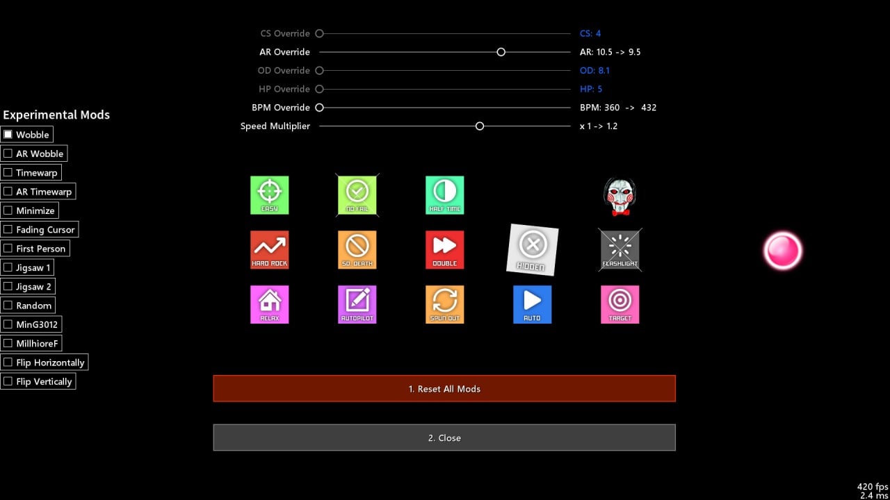Имеется возможность регулировки темпа полёта "битов" – маленьких геометрических фигур, что требуется разбивать для успешного продвижения по этапу – а также, их размера, шансов на ошибку, и количества очков здоровья безымянного виртуального протеже. Также, пользователю предлагаются и другие типы кастомизации собственного геймплея, заключающиеся, например, в добавлении дополнительных сложностей, вроде тряски экрана, передвижения игровой карты, инверсия движений и так далее. Имеется бесконечный режим, целью которого становится набрать как можно больше очков.