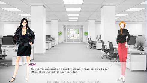 - Симулятор свиданий в офисе бондажа с проработанными, анимированными и интерактивными сценами.