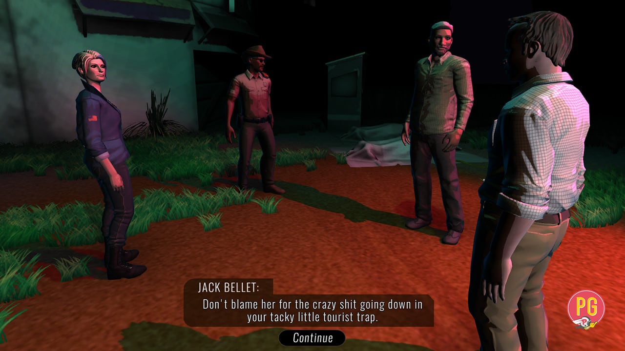 Knee Deep начинается с того, что во Флориде, а именно в городе Сайперс Кни, знаменитый актер Тег Кёрн покончил с собой прямо на площадке. Игрок будет расследовать смерть звезды с перспективы сразу троих героев: блогера Романа Тига, репортера Джека Беллета и частного детектива К.С. Гаддиса.
