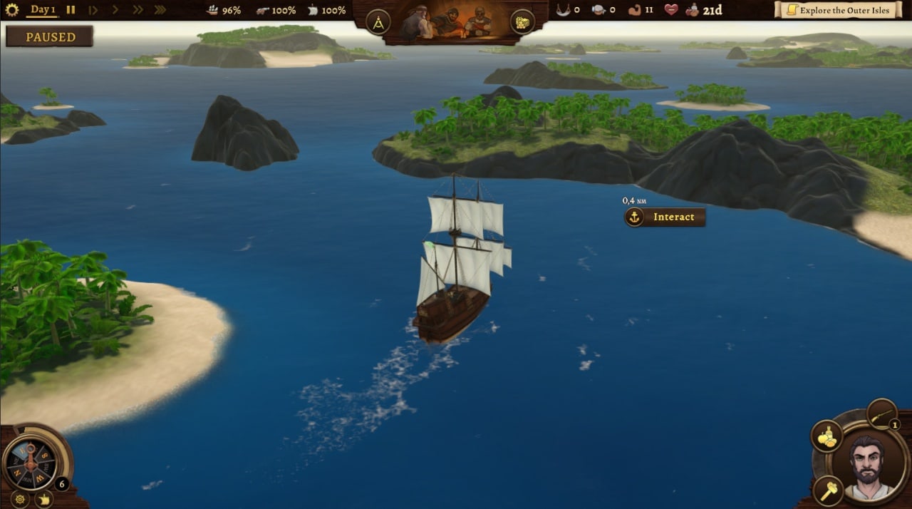 Окружение генерируется процедурным образом, что позволяет постоянно сталкиваться с новыми локациями и препятствиями. Море наполнено отмелями, бурными регионами, островами и рифами, способными не слабо напрячь корабль. На борту можно настроить смену сотрудников, распланировать запасы провизии, ремонтировать поврежденные части корпуса или влиять на мотивацию экипажа. На старте у игрока будет пустая карта, по мере исследования она показывает те места, где был транспорт. На пути юзер столкнется с подозрительными туземцами, головоломками и загадками.