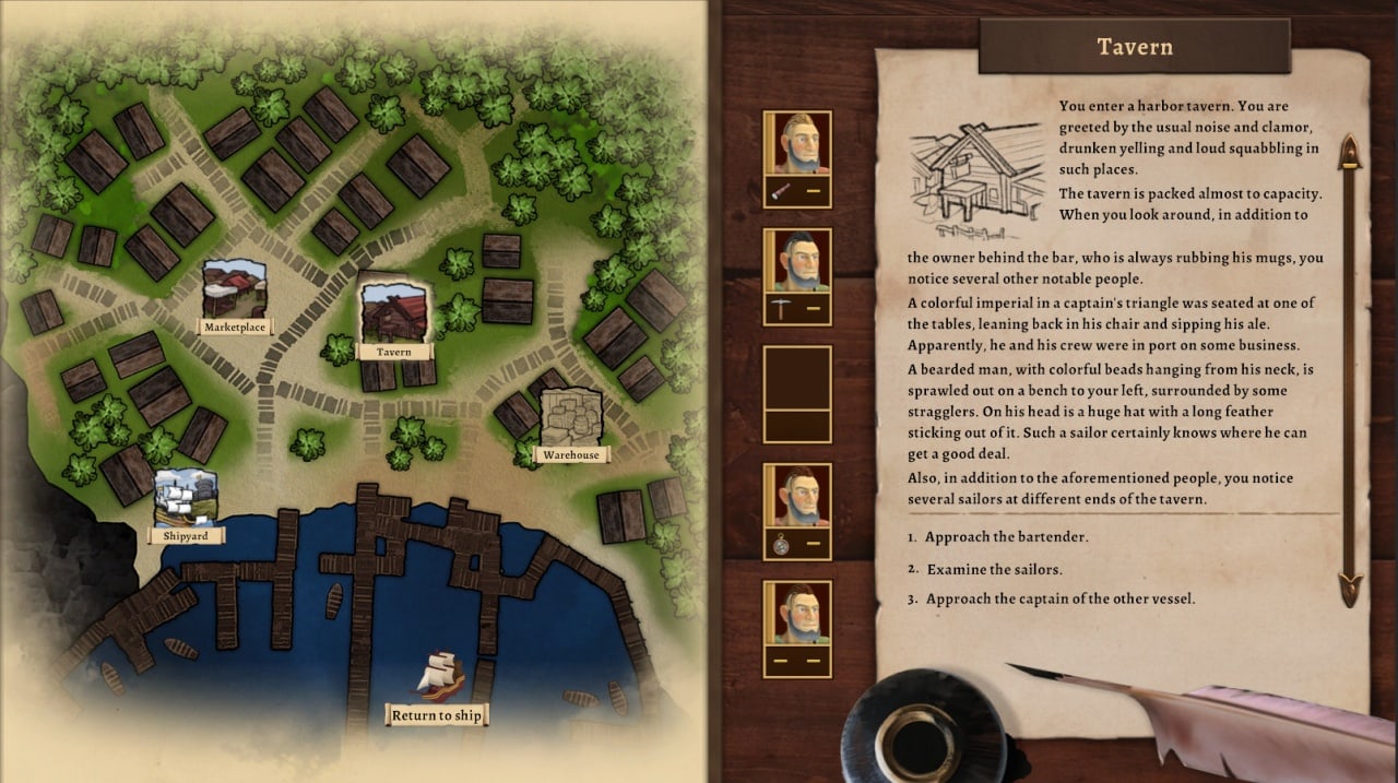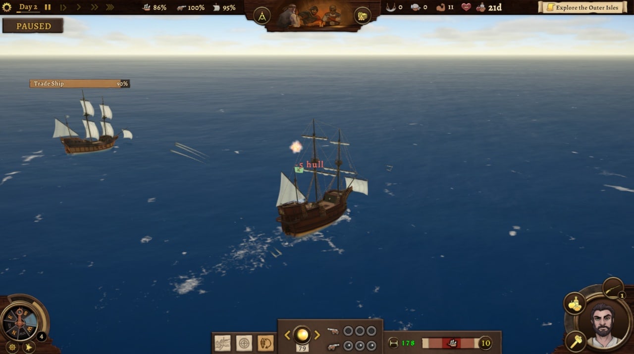 Найденные материалы необходимы для модернизации корабля. Перейдя в режим улучшения, вид сверху предлагает выбрать область судна, а после начать его апгрейд. Это поможет легче переживать бурю или перестрелки с соперниками. По обширному миру блуждают стаи пиратов, но смертоносные пушки могут остановить их в любой момент. Если подопечный погибнет, то прохождение завершится навсегда, без возможности восстановления. Дипломатия и переговоры могут помочь остаться в живых или не вступить в конфликт.