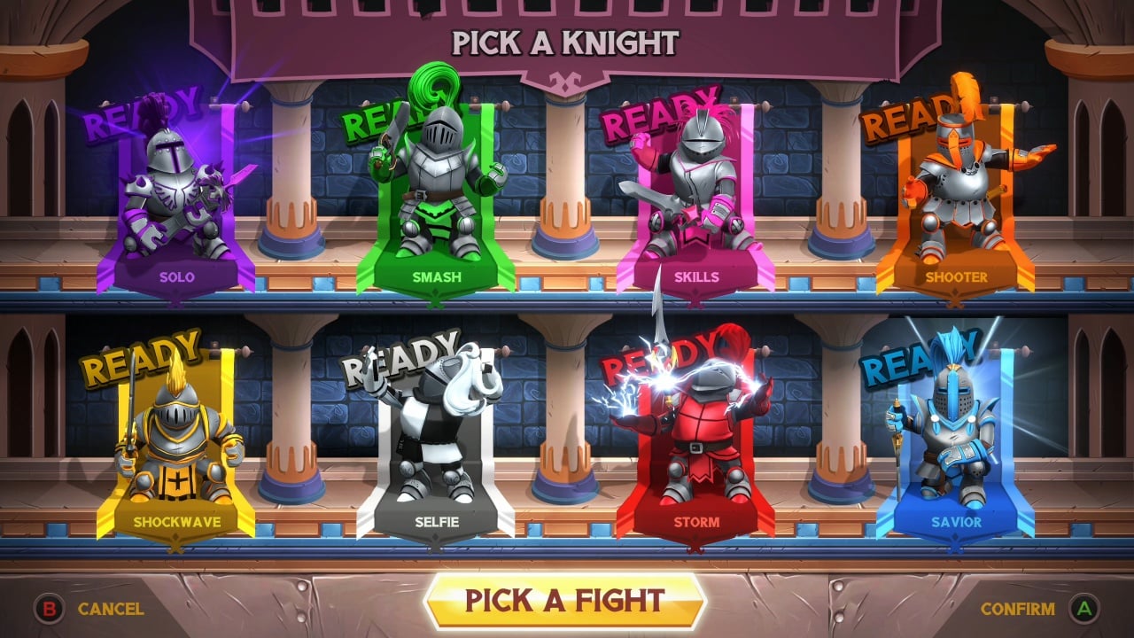 Чтобы открыть новых рыцарей, необходимо выполнять различные условия и задачи: убить 1000 врагов, не выронить из рук миниган на протяжении минуты и т.д. В зависимости от сложности цели, открывается персонаж, представленный высокими показателями скиллов и умений. Каждый рыцарь, участвующий на турнире, по-своему уникальный. Герои разнятся характеристиками и тактиками боя.