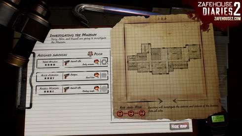 Zafehouse Diaries 2 - пошаговый зомби-выживастик, в котором необходимо назначать задачи своей команде. Все герои имеют свои характеристики, навыки, мотивацию и предубеждения. Каждый час требуется поручить своим героям задание, а потом следить за дневником, описывающий успехи членов отряда.