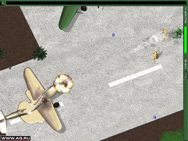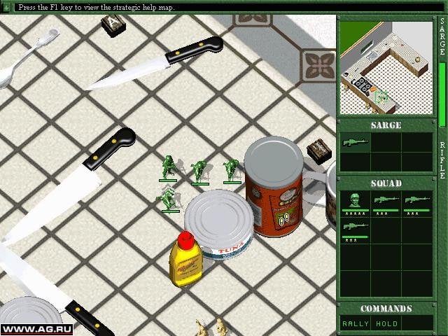 Представлено также множество мощного игрушечного оружия, способного превратить врага в динамит или увеличительное стекло. Управляйте как наземной пехотой, так и тремя видами техники, среди которой лодки, джипы и танки. Сражайтесь на территории кухни, двора, гаража и прочих участках обычного жилого дома. Станьте сержантом, ведя свое войско вперед. Устройте настоящее пластиковое побоище!
