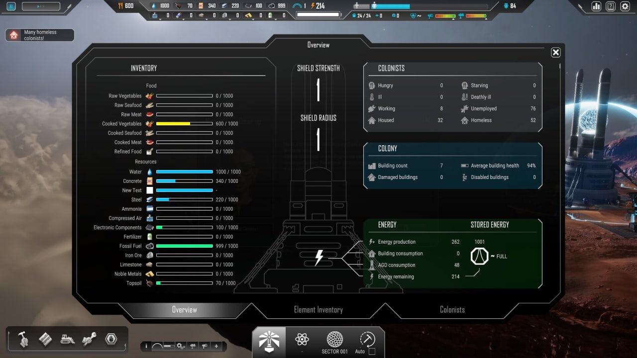 Экосистема хрупка, а люди на грани срыва, если не угодить их желаниям или требованиям. Благополучие подданных позволит добиться успеха в миссии. Колонисты требуются в крове, еде и медицинском обслуживании. Иногда для выживания необходимо разумно жертвовать. Ученые в космосе исследуют новые технологии, способные увеличить параметр каждого аспекта в прохождении. Оборудования и специальные гаджеты помогут противостоять стихийным бедствиям: ядовитые облака, астероиды и геомагнитные бури.