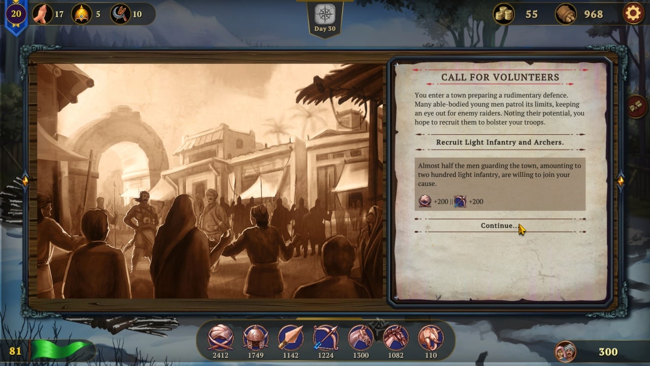 Главный герой сбежал со страны из-за катастрофического поражения. Безжалостному и могущественному завоевателю удалось сразить армию и взять контроль над важными стратегическими точками. Бывшие сограждане попадаются на пути и обращаются к центральному персонажу, чтобы тот взял их под командование и помог пройти трудный путь. Вместе они будут собирать ресурсы, увеличивать армию и отчаянно бороться за право вновь стать жителями своих земель.