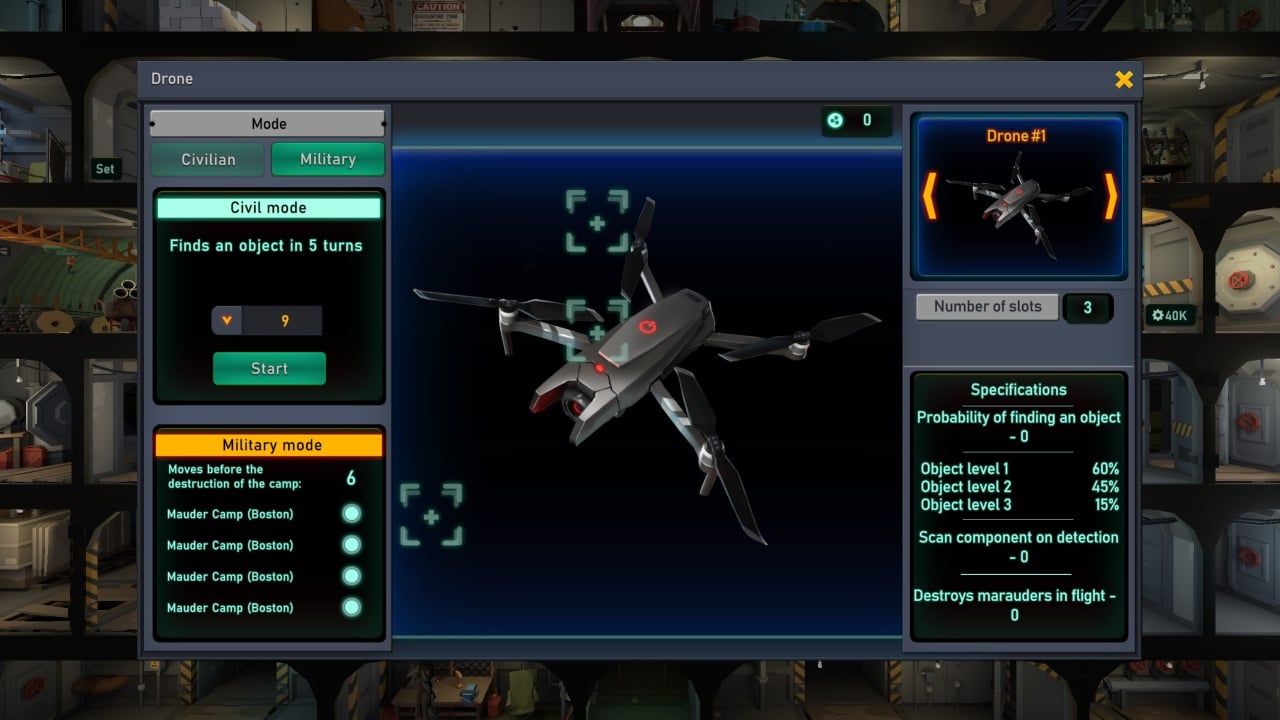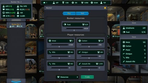 Юзеру открыт доступ к свободному строительству подземного убежища. Людям потребуются современные удобства и продовольствие, чтобы выживать в суровом мире. Поселенцы могут грабить и мародерствовать в других бункерах, чтобы приобрести ценные материалы. Подопечные могут погибнуть в сражениях, из-за болезней или других действий. Ресурсы помогают модернизировать помещения внутри бункеров и расширять территорию для увеличения числа гражданских лиц.