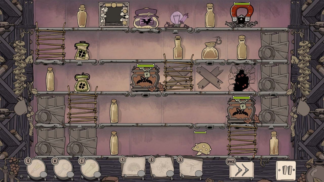 Можно разбивать банки, открывать саркофаги, продумывать стратегию действий и многое другое. Комедия граничит с ужасом. При общей мрачной стилистике, геймплей содержит огромное количество черного юмора и сюрреализма. Очень важно научиться адаптироваться под разные ситуации. Все уровни состоят из уникальных механик и необычных ситуаций. Чем быстрее реагировать на действия врагов, тем больше шансов пережить ночь в подвале.