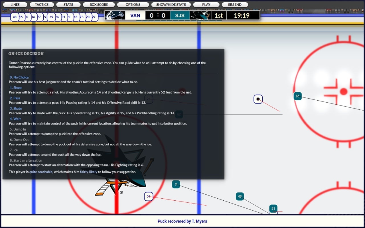 В задачи пользователя входит разработка стратегий на матчи и продумывание тренировочных занятий, чтобы улучшить и сплотить хоккеистов своего клуба. Наблюдая статистику и представленные возможности, можно видоизменять тактику и различные приемы, к которым есть возможность прибегнуть. Продвигаясь вверх по карьерной лестнице, приходиться выполнять многозадачные квесты и принимать важные решения, влияющие на процесс прохождения игры.