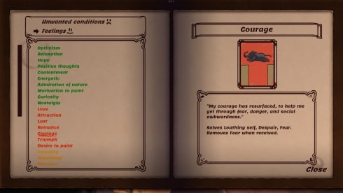 Атмосфера в Artist Life Simulator наполнена искусством и творческой деятельностью, которая реализована в случайно генерирующемся жанре роуглайк. Игроку необходимо искать вдохновляющие события, работать над чувствами и эмоциональным исполнением, создавая шедевральные постановки. В процессе прохождения основного сюжета, будут открыты 65 разнообразных чувств, имеющих различные эффекты на окружающих и самого протагониста. Каждая карточка передает состояние психики и настроения героя, позволяя продумывать наперед ходы.