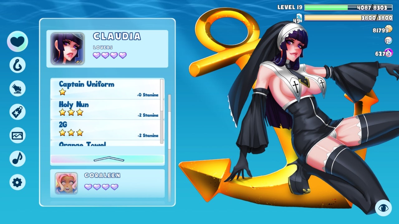 В процессе прохождения, можно улучшать способности или прокачивать выносливость героя. Получится чаще и дальше закидывать сети, чтобы вылавливать драгоценные сокровища, помогающие получить одобрение со стороны девушек. Загадочные красавицы нуждаются в большом количестве подарков, поэтому приходится усердно трудиться для достижения взаимных и теплых отношений.