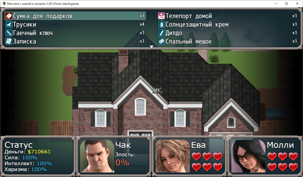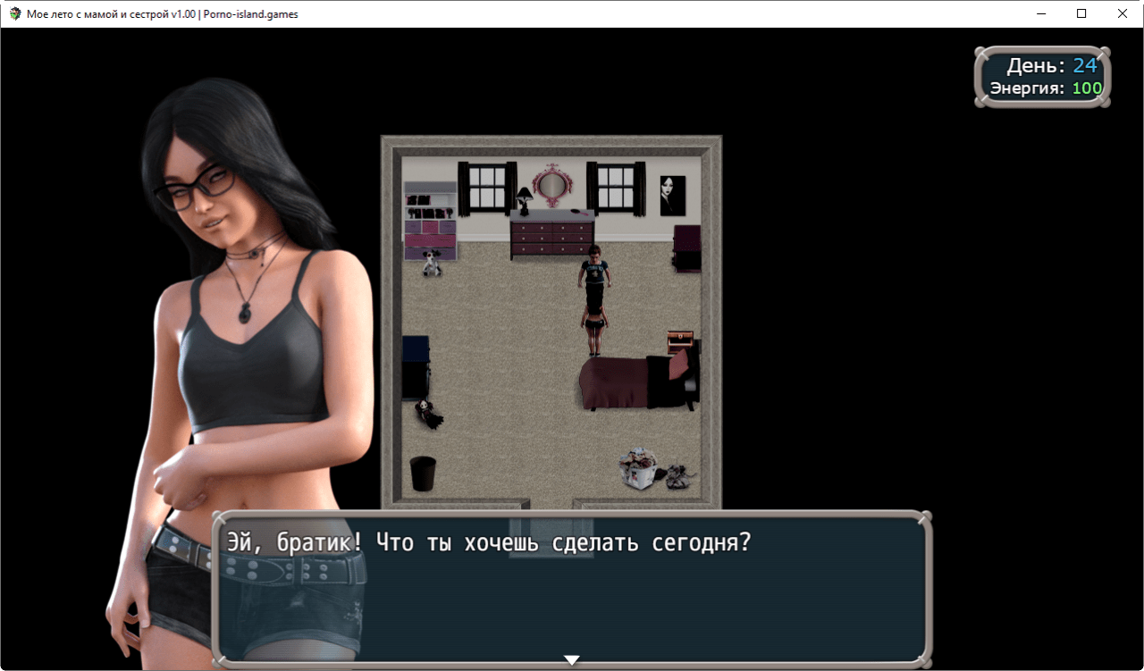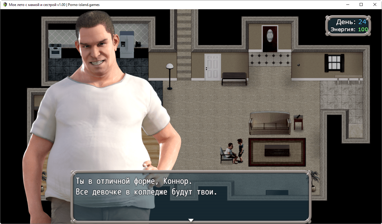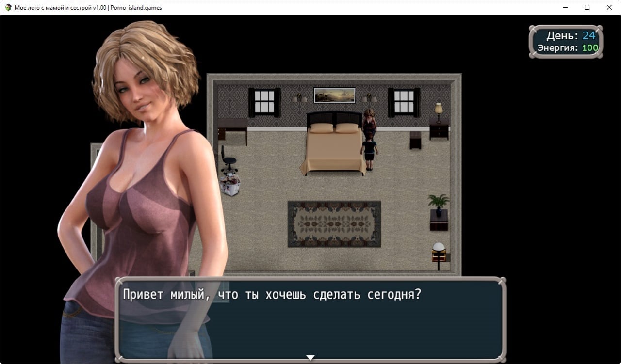 My Summer with Mom and Sis – это интерактивный роман, где игроки начинают путь в роли паренька по имени Коннор. Герой отправляется на совместный летний отдых в коттедже, где с ним будет мама и сестра. Игра рассчитана на взрослую аудиторию, потому что присутствуют сцены эротического характера. В проекте предстоит передвигаться по небольшим локациям протагонистом, вступая в диалоги с обитателями дома через визуальное текстовое окно, где нарисованы кат-сцены и персонажи. Парень будет тратить выносливость на различные действия, которую нужно восполнять во время сна.