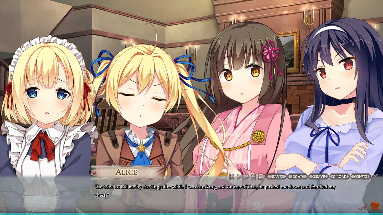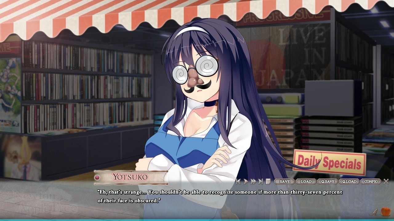 Пользователи в Ньютон энд зе Эпл Три будут наблюдать за сюжетной линией, что позволит выйти на одну из 5 доступных концовок. Игра представляет собой визуальную новеллу, где получится интерактивно взаимодействовать в кат-сценах, выполненных в анимешной стилистике. Юзеры смогут оказывать влияние на рассказ, подбирая в определенных моментах выборы из действий. Придется читать диалоги между персонажами, определяясь с репликами для Сюджи Асанага. Прохождение занимает около 15-30 часов реального времени, позволяя геймерам раскрыть все арки, завязанные на построении отношений с девчонками. Юноша сможет узнать подробнее личные истории каждой из пяти героинь, что будут знакомиться и общаться с героем. Главной задачей станет поиск пути домой, чтобы попасть в родное измерение.