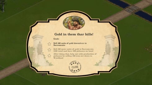 В процессе прохождения, приходится создавать города от побережья Тихого океана до гор Сьерра-Невада в режиме песочницы. Карты будут генерироваться процедурным образом, создавая уникальные условия для каждого уровня. Пользователи смогут добыть более 50 разновидностей ресурсов, которые необходимы для строительства зданий на земельных участках. На территории поселений будет перерабатываться золото, которое можно превратить в слитки и отправить на продажу.