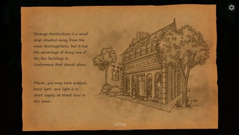 Таинственная атмосфера в Strange Horticulture наполнена большим количеством загадок, с которыми приходится сталкиваться протагонисту. Главный герой является цветоводом, что развивает небольшой бизнес под названием "Загадочные растения" в городе Андермире. Вокруг поселения находятся густые леса, в которых проживают ведьмы. Игра сделана в виде квеста-головоломки, нарисованной в двухмерной графике. Геймерам придется вести расследование и знакомиться с персонажами, населяющими мир.