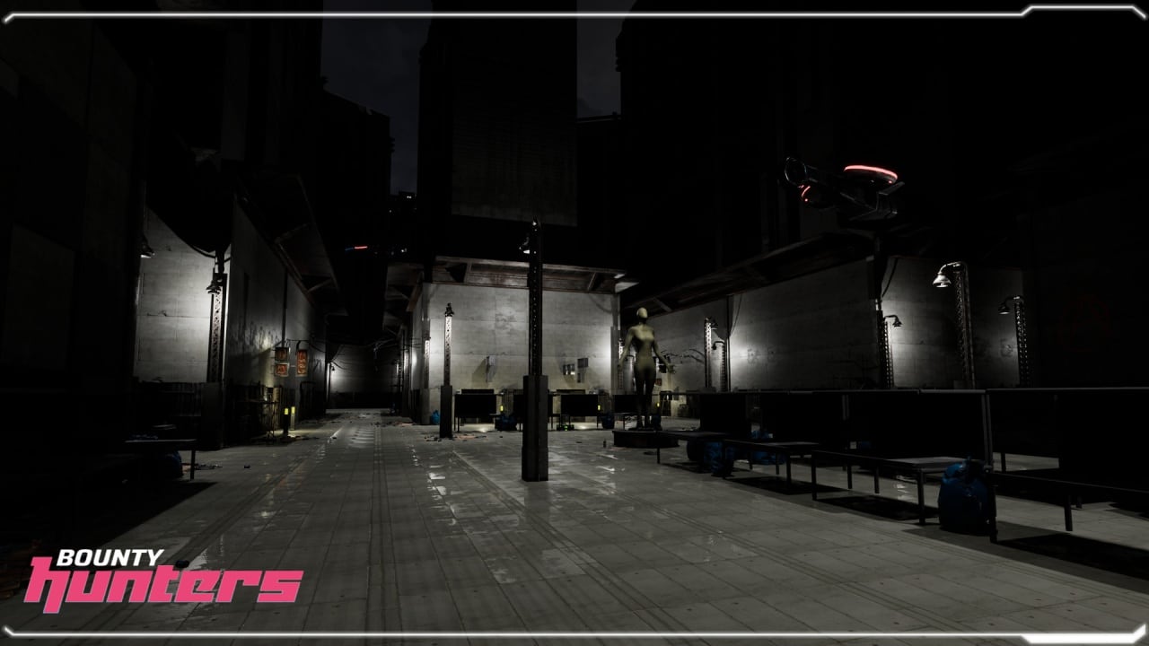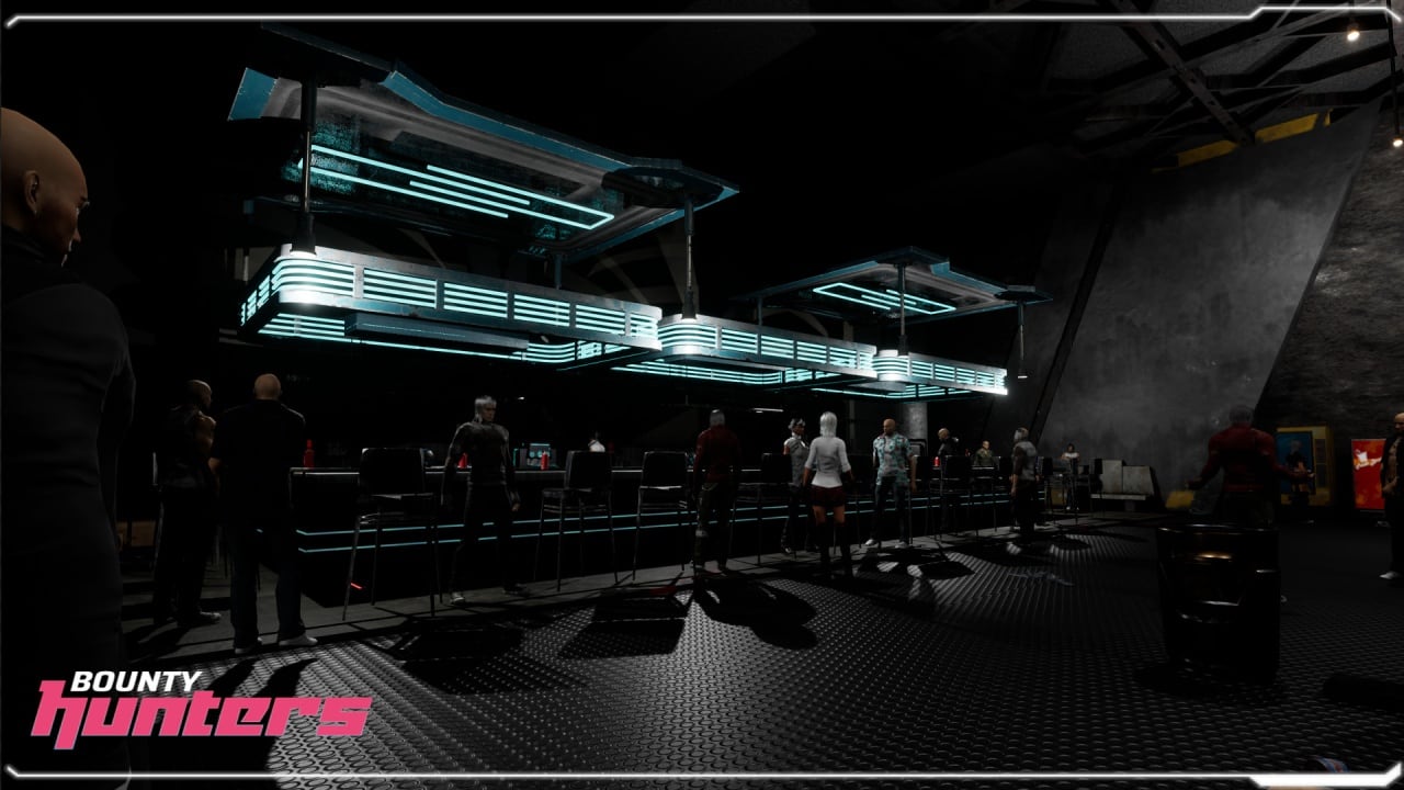 Сражения на аренах в Bounty Hunters продемонстрированы в сеттинге киберпанка, где оказывается главный герой. Пользователи смогут прогуляться по улочкам города под названием НеоТерминус в 2250 году, занимаясь устранением маргинальных слоев общества. Протагонист вынужден очищать локации от преступных банд и группировок, населяющих темные гетто. В процессе стычек с местными бандитами, герою придется убегать или отбиваться от "охотников за головами".