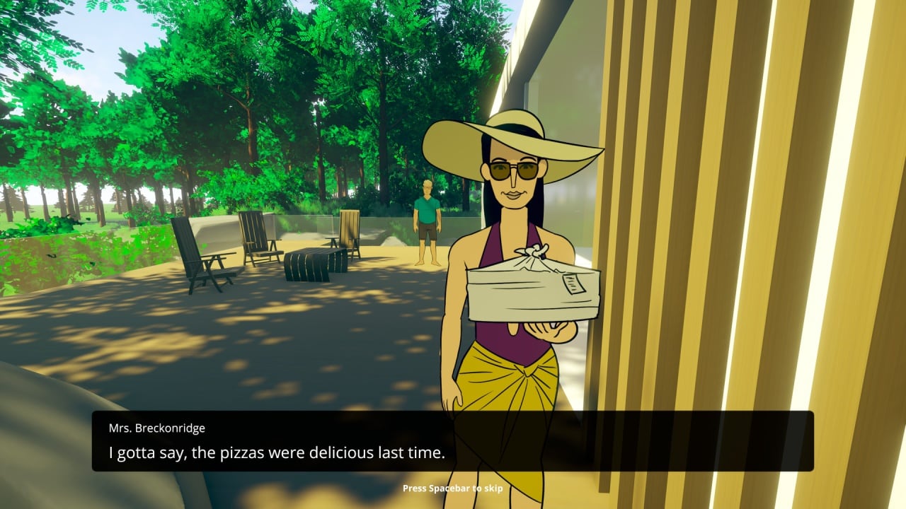 Один раз главперсонажу поступает заказ. Правда, ехать далеко – загород в домик, который был построен недавно. Он выглядит богато, а угловатые стены постройки совмещаются со современным дизайном. Есть множество окон, в которые можно заглянуть. Что же скрывает этот дом – неизвестно. Луиджи болтает с хозяином, отдает заказ и уезжает. Но позже ему начинают поступать еще заказы с того места. Теперь он понимает, что за закрытыми дверями этой виллы творятся странные вещи. Предстоит исследовать их. Доступно 13 миссий-доставок, чтобы продвинуть по сюжету. Также в зависимости от выборов и диалогов во время прохождения будет 4 концовки.
