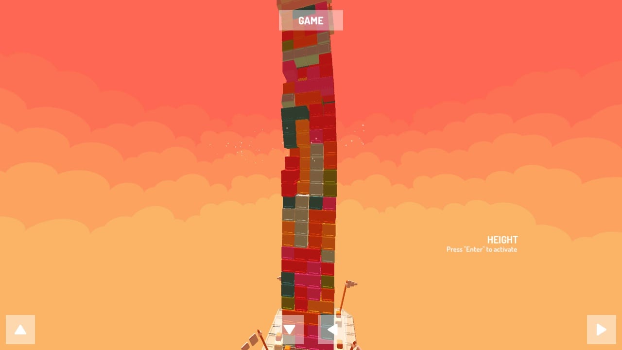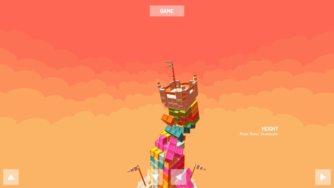 Трудность в прохождении напрямую зависит от количества элементов, которые находятся на локации. Игрокам необходимо постепенно разбирать высокую башню, чтобы не завалить воздушную крепость. Главной задачей становится спуск постройки на землю, применяя для этого свое пространственное и логическое мышление. Перемещая блоки, придется учитывать физику и взаимосвязь между всеми компонентами на экране, что могут упасть и разрушить цитадель.