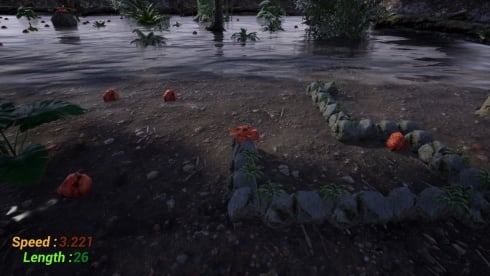 У Rock Snake минималистичный интерфейс. На экране отображается только текущая скорость и длина питона. От других клонов культовой аркадной забавы эта игра отличается полностью трехмерной и детализированной графикой с текстурами в HD качестве. Камера расположена сверху и под углом. Перемещать её нельзя, поскольку она сама вращается и автоматически следует за персонажем. Он, к слову, способен двигаться в 4 направлениях. Также инди-проект выделяется местом действия. Ползать в нём предстоит по тропическому лесу под звуки дикой природы. Само игровое поле тут без сетки, что добавляет немного челленджа, поскольку ориентироваться на локации приходится "на глаз".