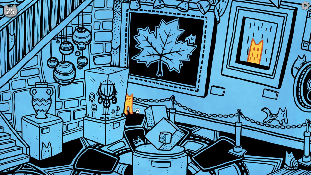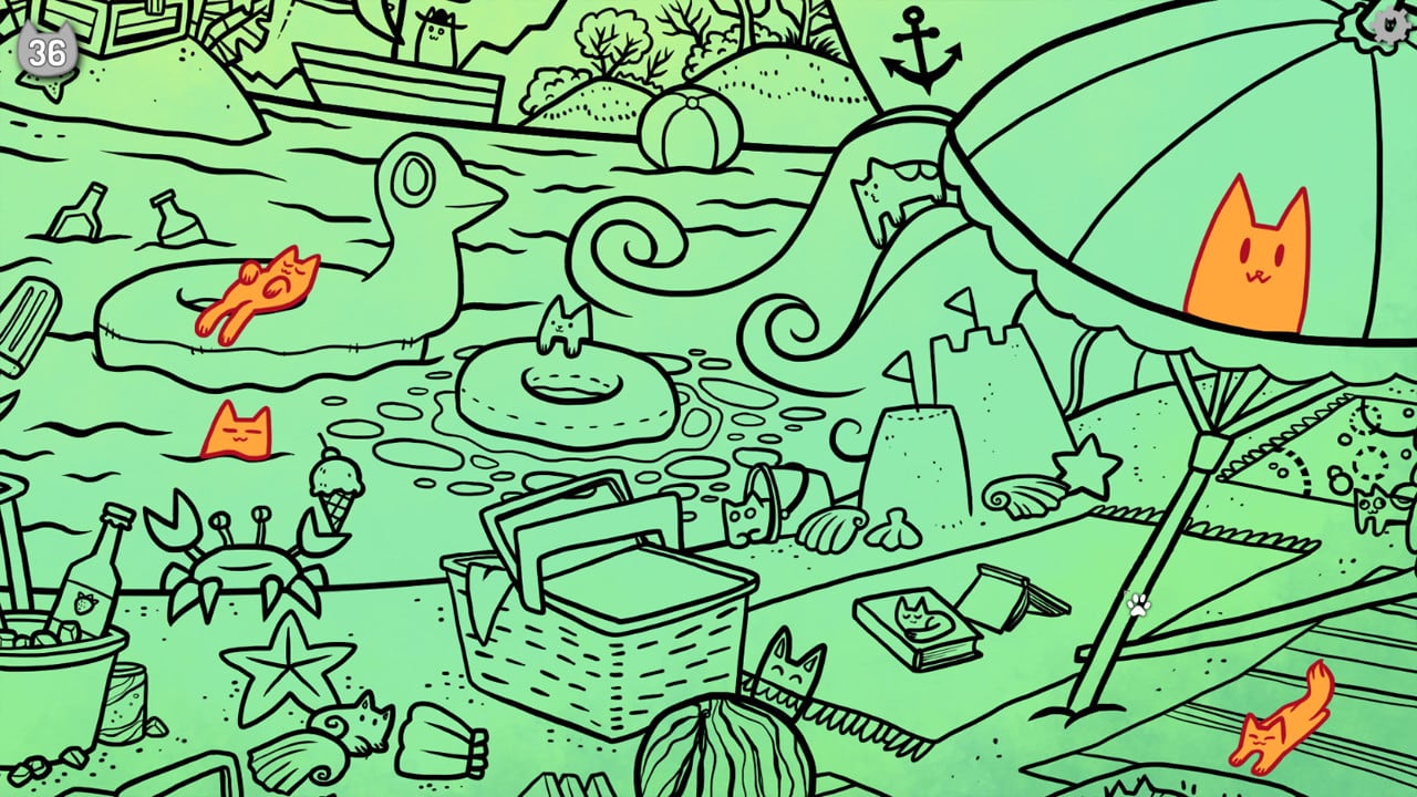 Геймер побывает на пляже, внутри художественной галереи, кафе и других местах, наполненных вещами и питомцами. Каждое прохождение создает случайный набор кошек. Чтобы разблокировать все достижения, юзеру потребуется несколько раз перепройти каждую область. В меню отображается количество открытых и заблокированных миссий, а также то, что требуется сделать, чтобы заполучить то или иное достижение. Сложность поиска заключается в том, что вся локация сделана в черно-белом цвете.