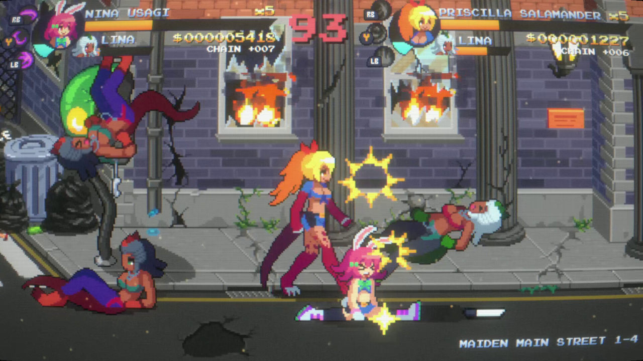 Maiden Cops – это аркадный битэмап с олдскульным геймплеем. Его двухмерная пиксельная графика стилизована под аниме. История повествует о буднях девушек-полицейских из частной охранной корпорации. Они противостоят преступной организации "Освободители" в городе Мейден-Сити. Эти бандиты сеют вокруг себя насилие и хаос, желая лишить жителей их свобод. Сюжетную кампанию можно проходить не только в одиночку, но и вдвоем. Мультиплеер здесь только локальный. Присутствует выбор сложности. По мере прохождения открываются новые скины на персонажей. Также можно разблокировать предметы, арты и музыку. Геймплей выглядит следующим образом. Женщины-копы бродят по улицам и зданиям, сражаясь с превосходящими силами противника. Обычно их запирают на экране с врагами. После победы над недругами можно двигаться дальше. Есть возможность ломать некоторые объекты. Здоровье восполняется с помощью еды (у каждой протагонистки есть свои предпочтения). Уровни с рукопашными схватками разбавляются гоночными этапами, где дают покататься на мотоциклах и автомобилях.