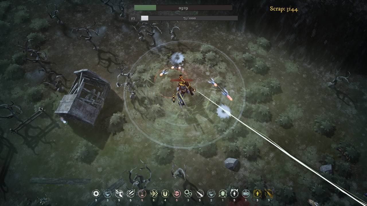 РЕМЕДИУМ: Стражи – это духовный наследник Vampire Survivors. Механический герой сам выбирает себе цели для атаки и самостоятельно их уничтожает. А игроки способны лишь перемещать его по локации, чтобы избегать повреждений в ближнем бою, и создавать ему различные билды. Враги лезут на протагониста со всех сторон. Из убитых супостатов выпадает Первоматерия. Она является аналогом опыта. Так что её нужно собирать для повышения уровней. За каждый левелап юзерам разрешают выбрать один из 3 апгрейдов. Это может быть новое оружие, алхимические элементы или улучшение для уже имеющегося снаряжения. Пушки и предметы можно комбинировать. Место в инвентаре под экипировку ограничено. Чудища после себя также порой оставляют шестеренки. Они требуются для перманентной прокачки в перерывах между забегами.
