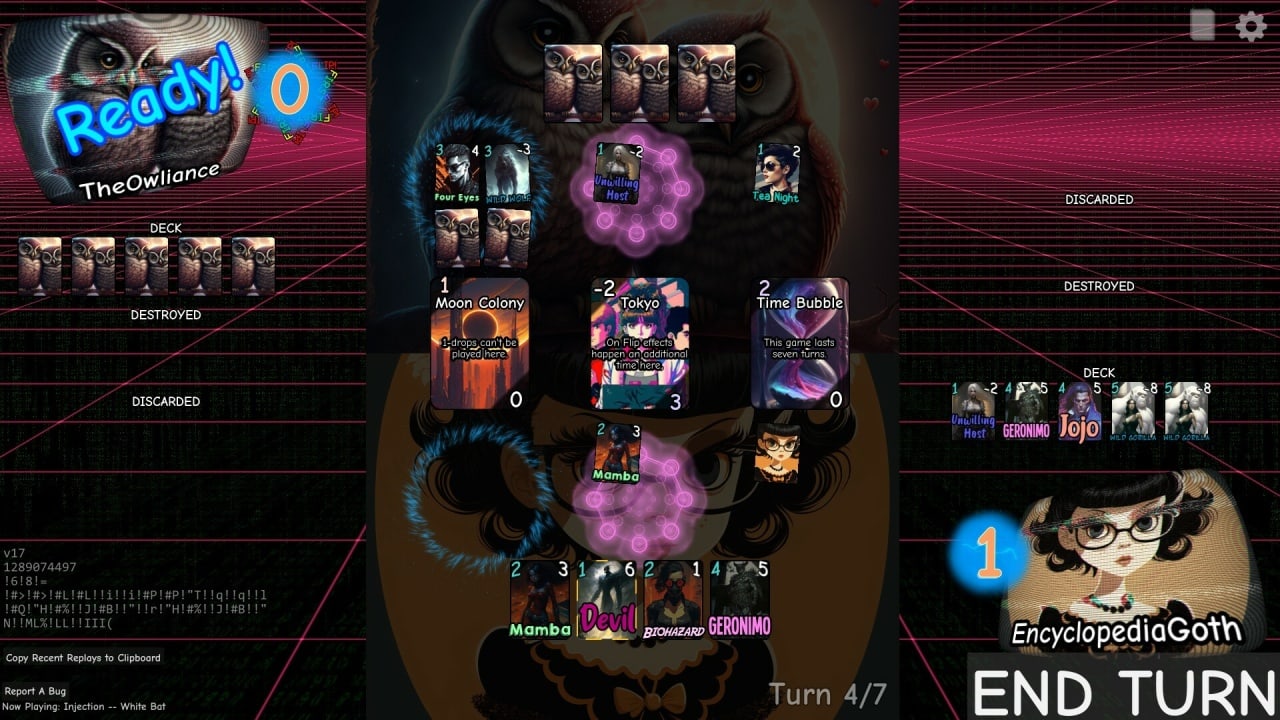 Enter The Cyberjungle - это стильный карточный баттлер, который погрузит тебя в захватывающий мир киберспорта! Здесь ты сможешь насладиться мощными картами, включающими более 200 уникальных функций и возможностей, а также проверить свои навыки создания колоды без лишнего гринда. В этой одиночной игре тебе предстоит собрать свою команду цифровых героев и принять участие в настоящем турнире в Cyberjungle. Создавай свои колоды самостоятельно или импортируй уже готовые. Любуйся красочными изображениями, созданными безупречным искусственным интеллектом, напитанным легальными веществами.