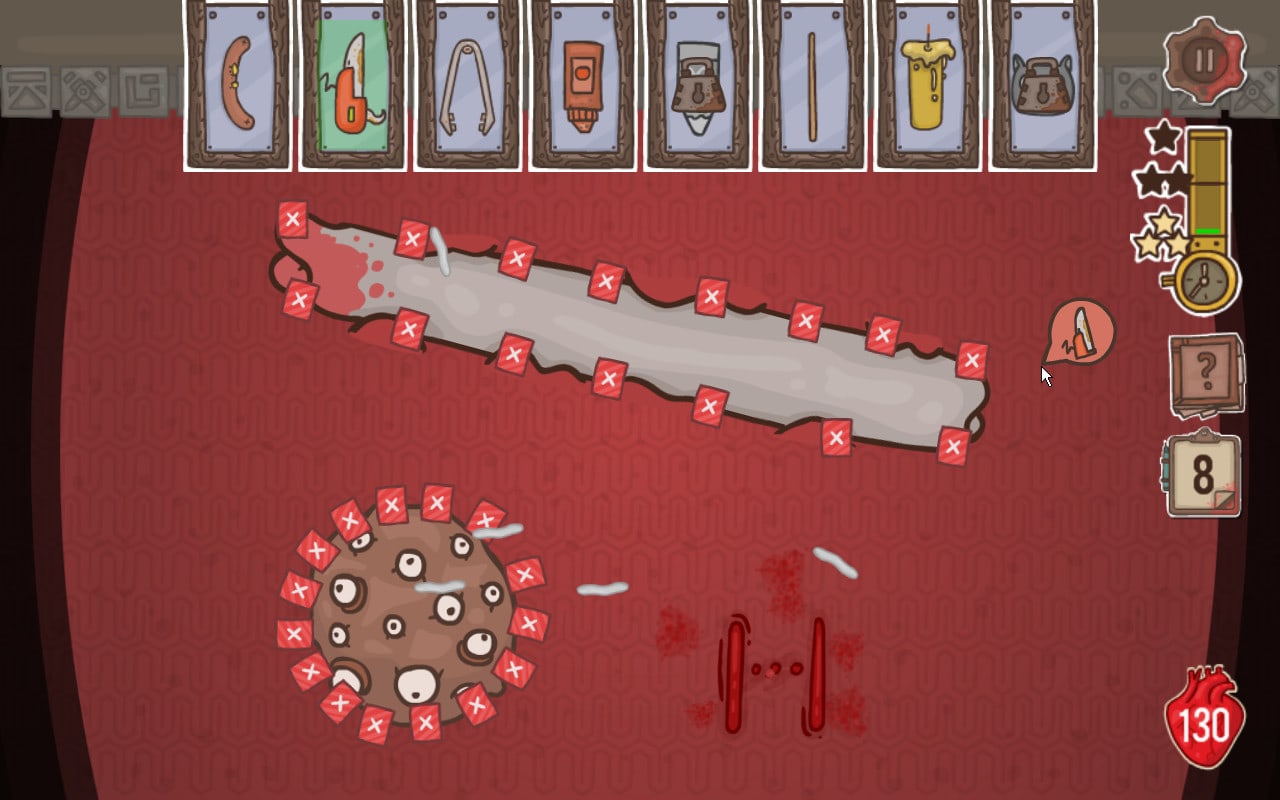 Игровой процесс основан на точности мыши и скорости выполнения действий. Кнопка на боковом меню удобно подсвечивает нужный инструмент и место его использования. В начале игры задания невысокой сложности, но с каждым уровнем становится все труднее, так как пациенты теряют кровь, что является своеобразным таймером, управление которым требует использования кетчупа между выполнением других заданий. Одна ошибка или неосторожность может легко привести к концу игры.