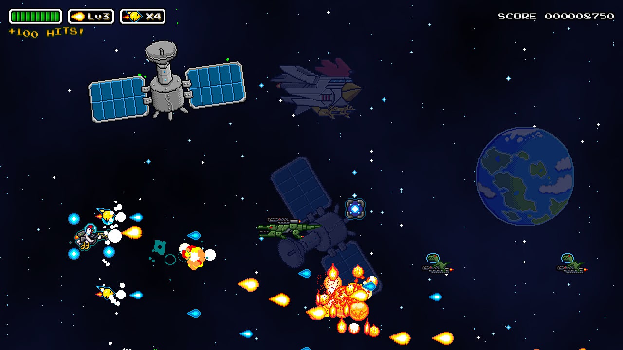 Bad Chicken - это классическая игра-стрелялка с боковой прокруткой, которая обязательно вызовет у вас ностальгические чувства. Но не позволяйте ретро-стилю обмануть вас, этот экшен полон действий и испытаний, которые максимально проверят ваши навыки. Система Ferus в беде, поскольку на границе системы обнаружены враждебные инопланетные силы. Войска Терраферуса, посланные на борьбу с пришельцами, вернулись обратно в виде марионеток с промытыми мозгами захватчиков. Именно вам, команде наемников, предстоит спасти положение и защитить Ферус от внеземной угрозы.