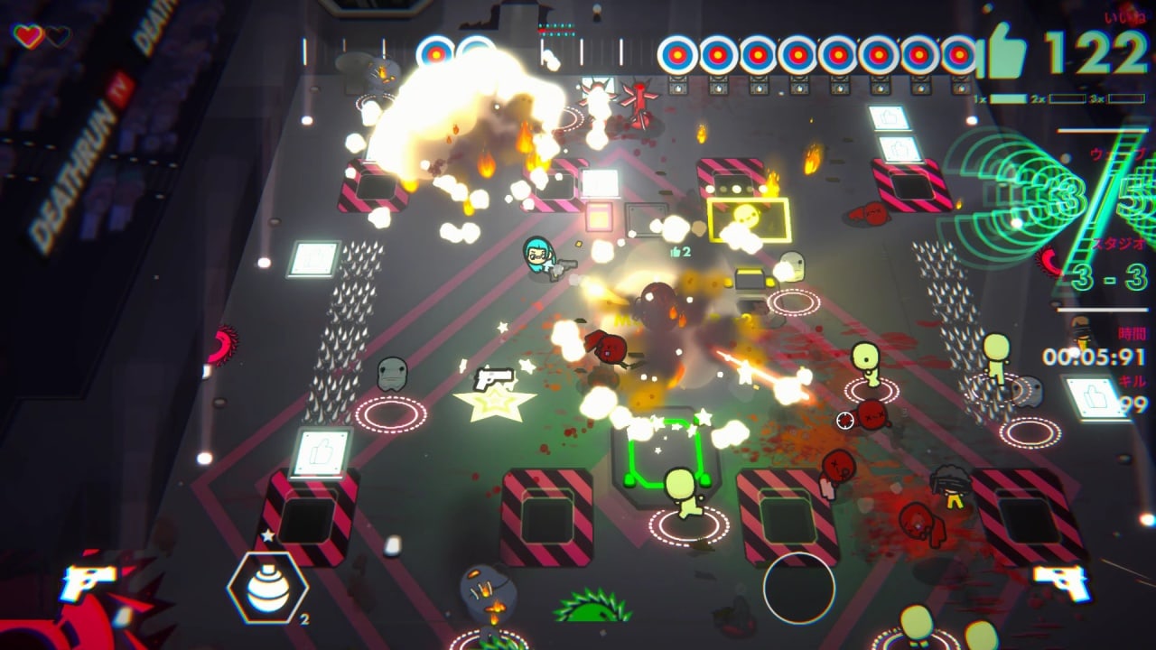 DEATHRUN TV - это жесткой твин-стик шутер в жанре rogue-lite, где вы должны сражаться за славу и свою жизнь. Вас ждет невероятный экшен, головокружительные скорости и бесконечные полчища мутантов, которые попытаются вас уничтожить. Игроки должны победить в комнатах с эпическими боссами, такими как Глаз, Зангбиф Медведебор и Элитный Страж, чтобы продвигаться дальше. Но зрители могут изменить ход игры, вводя безумные команды в чате Twitch. Они могут помочь вам или, наоборот, уничтожить вас, выпустив орду монстров.