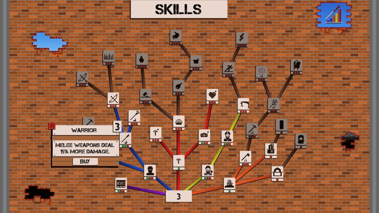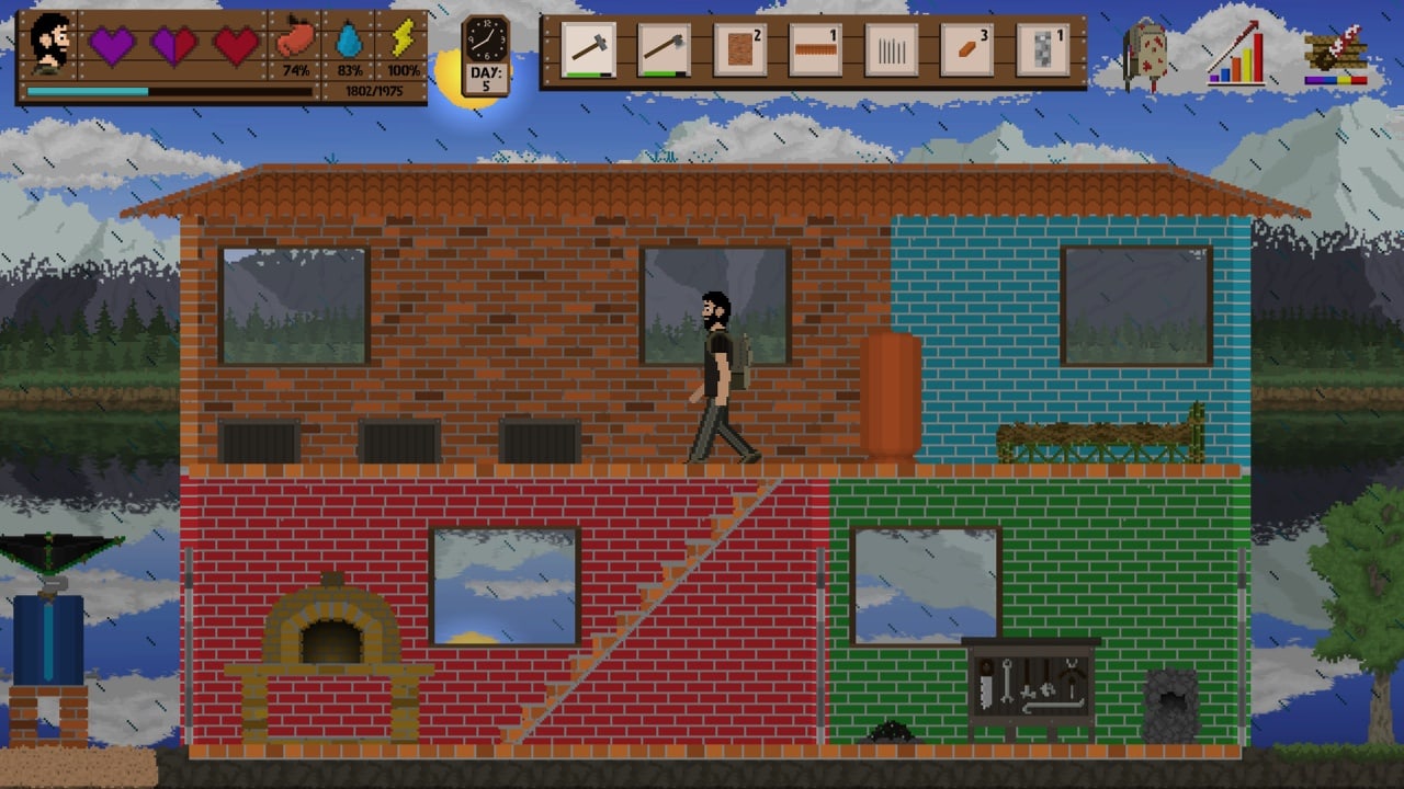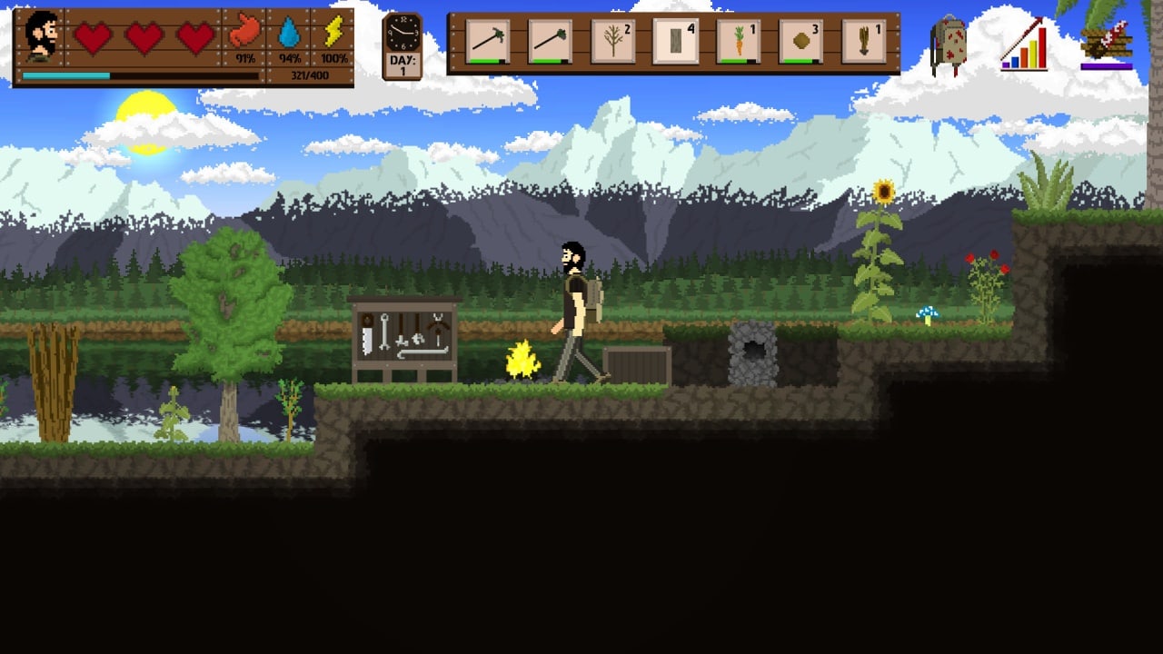 Предлагается пять классов навыков: Деревообработка, Сила, Выживание, Сопротивление и Эффективность. По мере накопления опыта вы можете развивать определенные умения с помощью соответствующего древа. Чем выше ваш уровень работы с деревом, тем более сложные предметы вы можете создавать на рабочем столе. Навык "Сила" увеличивает урон от атак, а навык "Выживание" повышает максимальное здоровье и способность к жажде. Способность "Сопротивление" уменьшает потерю выносливости при выполнении действий, а навык "Эффективность" повышает эффективность инструментов и предметов. Здесь день и ночь сменяют друг друга, поэтому, чтобы выжить в темноте, создавайте факелы, костры и убежища. Ночью видимость низкая, что затрудняет наблюдение за врагами, поэтому всегда имейте при себе источник света. Используйте кровать, чтобы ускорить наступление рассвета и пережить ночь.