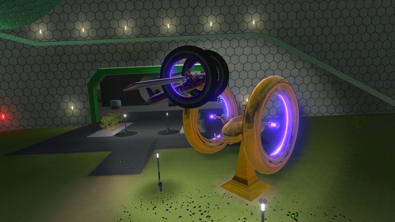 Управляй своим гиперколесным автомобилем на более чем 20 уникальных треках, двигаясь вперед и назад, на шести уровнях игры. Собирай золотые кольца, разбросанные по всей игре, и выигрывай трофеи, которые можно обменять на различные награды, такие как декали на машину или скины костюмов пилотов. Играй вместе с до 10 игроками в режиме онлайн или с ботами в одиночку. Настраивай игру так, как тебе нравится, выбирая комфортные опции, такие как вид от третьего лица и фиксацию поворота. Hyperwheel Overdrive - это игра, которая оставит незабываемое впечатление благодаря инновационному дизайну транспорта и потрясающей атмосфере VR. Включай свой гипердвигатель, бери свое лазерное ружье, и присоединяйся к нам в этом захватывающем мире гиперскорости и боевых машин!