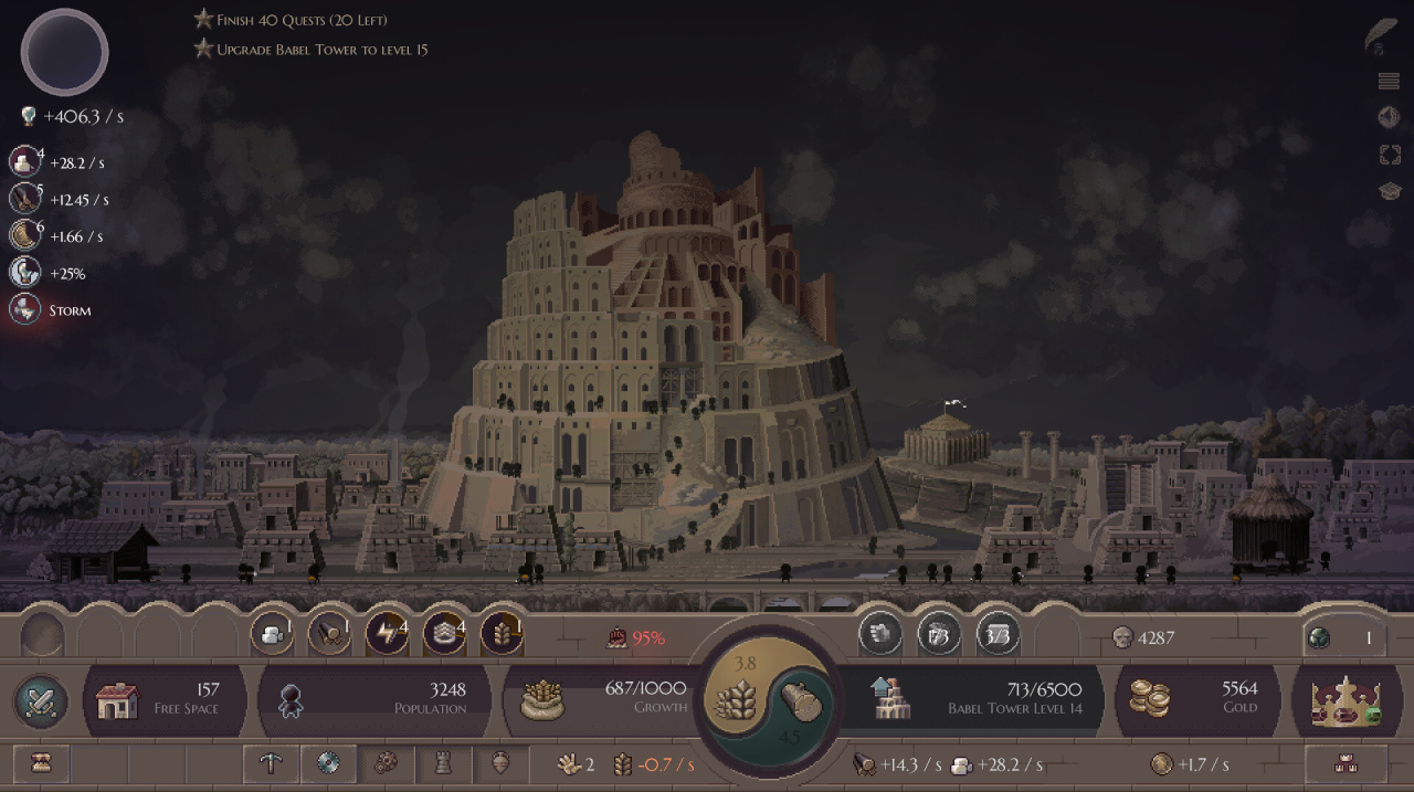 Microcivilization - гибрид жанров инкрементального кликера и стратегии - предлагает игрокам динамичный игровой процесс. Уникальное сочетание экспансии, строительства, исследований, сражений и сбора героев позволяет решать многогранные задачи. Повествование разворачивается в режиме кампании, в ходе которой игроки проходят различные исторические сценарии - от древних времен до футуристического сеттинга. Отличительной особенностью игры является механизм вознесения, позволяющий игрокам сбросить свой прогресс и начать все с чистого листа. Вознесение может быть инициировано игроком или вызвано внутриигровыми событиями, такими как Вавилонская башня или Апокалипсис. Это не только добавляет стратегию, но и вводит другие уровни сложности, открывая новых врагов, героев, чудеса и игровые механики.