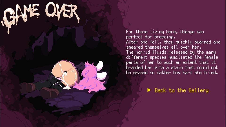 Udonge in Interspecies Cave погружает геймера в опасную ситуацию. Удонжэ, главная героиня, оказывается запертой в пещере, кишащей гротескными монстрами. Эти существа, движимые первобытным голодом, бродят в темноте, нацелившись на Удонже. Тайтл представляет собой опасный сценарий, оставляя юзера ориентироваться в опасностях, которые таятся в пещере. Проект классифицируется как экшен, но в ней присутствуют элементы другого жанра. Разработчик игры, компания NupuryuSoft, отнесла ее к категории порнографических видеоигр. Это означает, что адвенчура содержит откровенно сексуальный контент.
