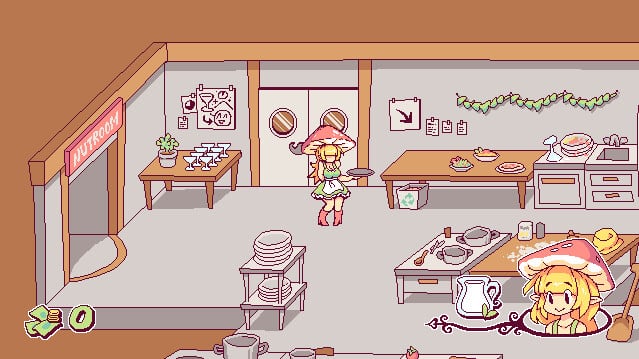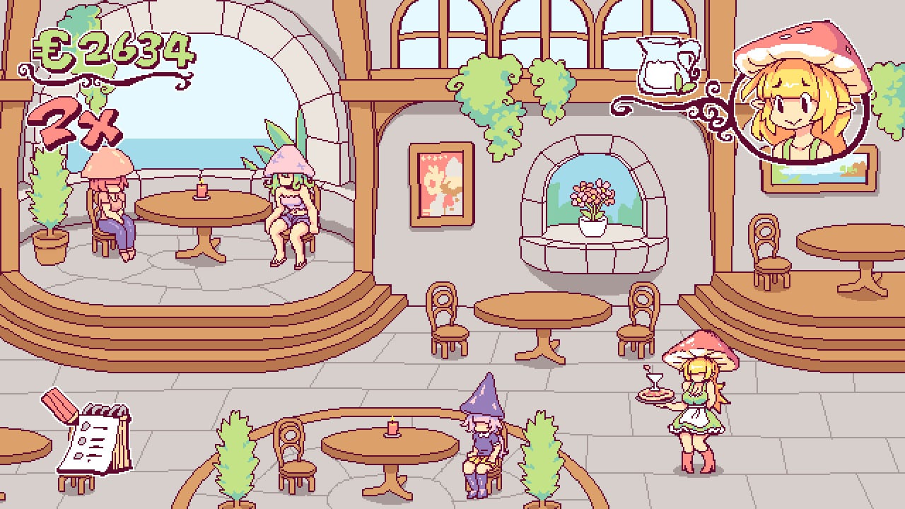 Эта механика добавляет игре сложности и неожиданных взаимодействий. Визуальный стиль использует эстетику пиксель-арта, что способствует созданию общей атмосферы. Обстановка ресторана детально проработана, в ней присутствуют различные столы, стулья и кухонное оборудование. Дизайн персонажей стилизован, а Пипина выделяется как ключевой визуальный элемент.