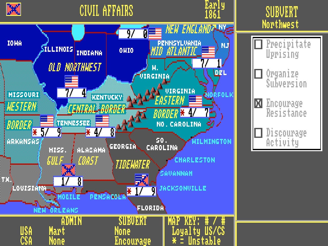 В этой стратегической игре вам предстоит сделать непростой выбор, будь то мобилизация поддержки для военных кампаний или управление тонкой дипломатией с иностранными державами. Судьба нации зависит от того, как вы справитесь со сложной динамикой того времени. В роли Линкольна вам придется решать такие спорные вопросы, как призыв в армию чернокожих солдат или угроза отделения Юга. В роли Дэвиса вы будете решать задачи по поддержанию дела Конфедерации в условиях ограниченных ресурсов и внутренних разногласий.