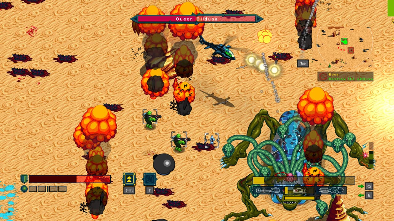 По мере продвижения вы откроете возможности AZ-TECH, древнего оружия и брони, которые улучшают способности мегакоптера. Эти улучшения необходимы для противостояния все более опасной армии рептоидов, и каждая новая модификация позволяет экспериментировать с различными стратегиями и снаряжением. Чем больше вы уничтожаете, тем мощнее становится ваш мегакоптер, создавая петлю обратной связи между разрушением и прогрессом.