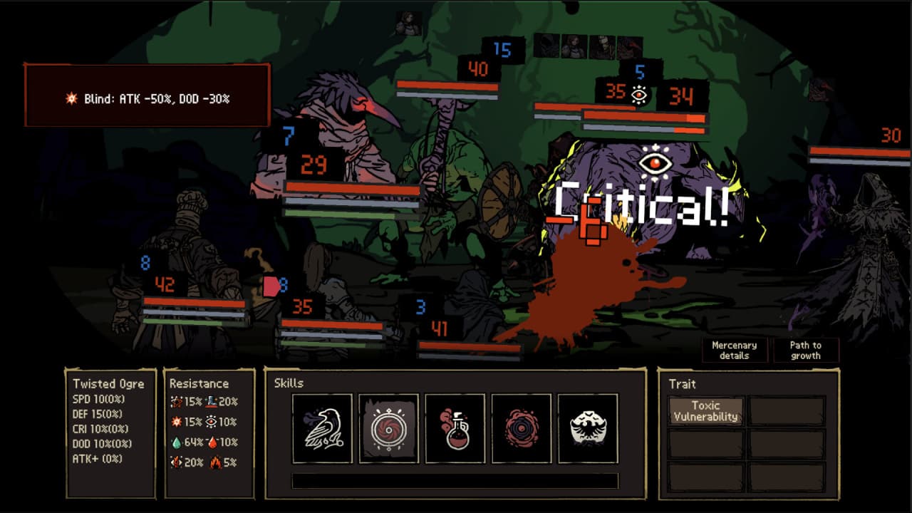 Каждый наемник привносит на поле боя случайные черты, создавая практически бесконечные комбинации для состава отряда и позволяя создавать персональные игровые стили, которые развиваются с каждой кампанией. Центральным элементом геймплея Queen Slayer является управление ресурсами при прохождении все более сложных испытаний, которые проверяют стратегическое мышление и способность к адаптации.