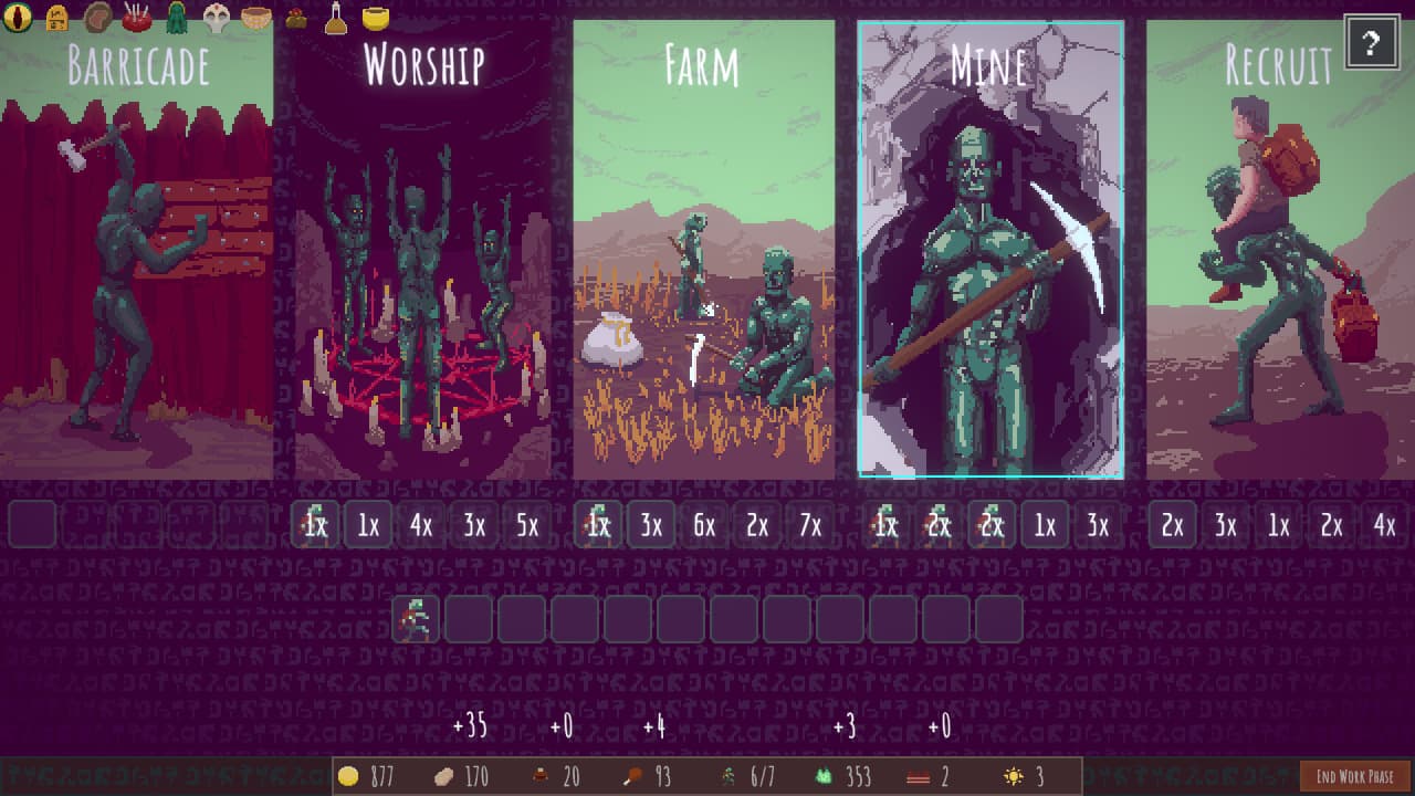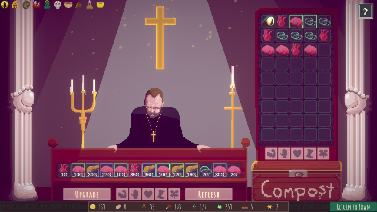 Игроки выбирают одного некроманта из четырех доступных для управления. Каждый некромант начинает игру с предопределенным набором реликвий, влияющим на начальную расстановку. В игре присутствуют системы мета-прогрессии, которые игроки могут разблокировать со временем. Продвижение по этим системам предлагает поддержку для прохождения более поздних уровней ритуалов в игре. Эти разблокировки также предоставляют дополнительные возможности для настройки подходов к игровым испытаниям.