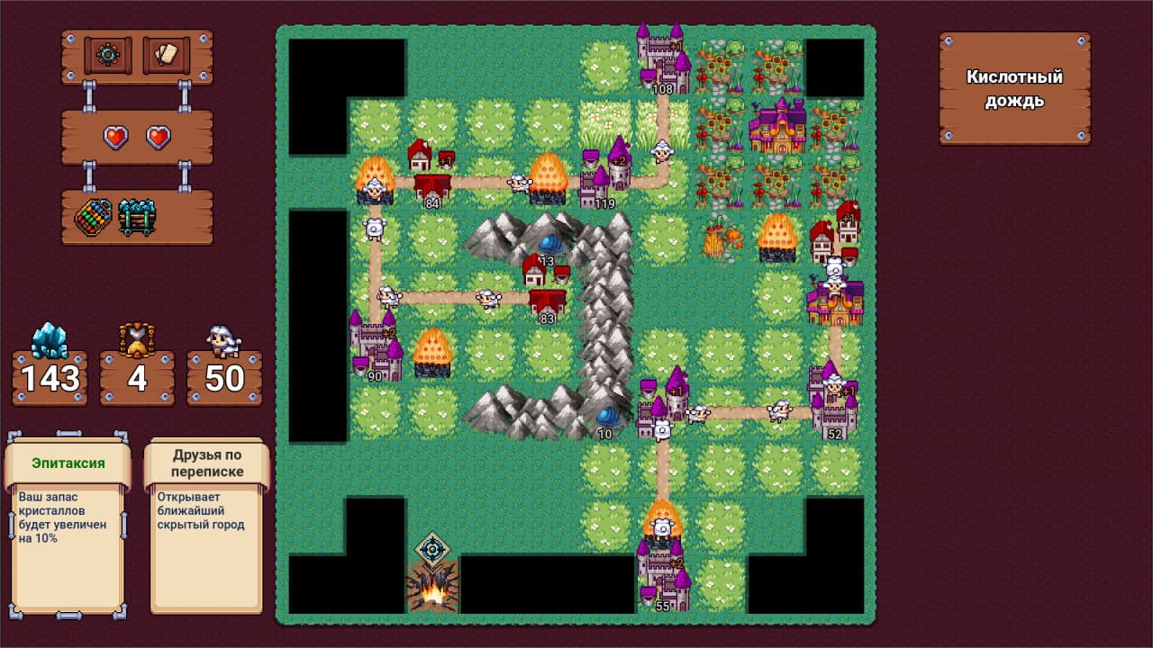 Flocking Hell – это рогалик, где основная задача – стратегическая оборона пастбища от наступающих демонических созданий. Процесс состоит из различных этапов, начиная с планомерного изучения карты, покрытой туманом. Этот начальный этап содержит элементы авто-боя после завершения подготовки, требуя от геймера эффективно распоряжаться ресурсами, предвидеть маневры противника и присматривать за многочисленными овцами под своей защитой.