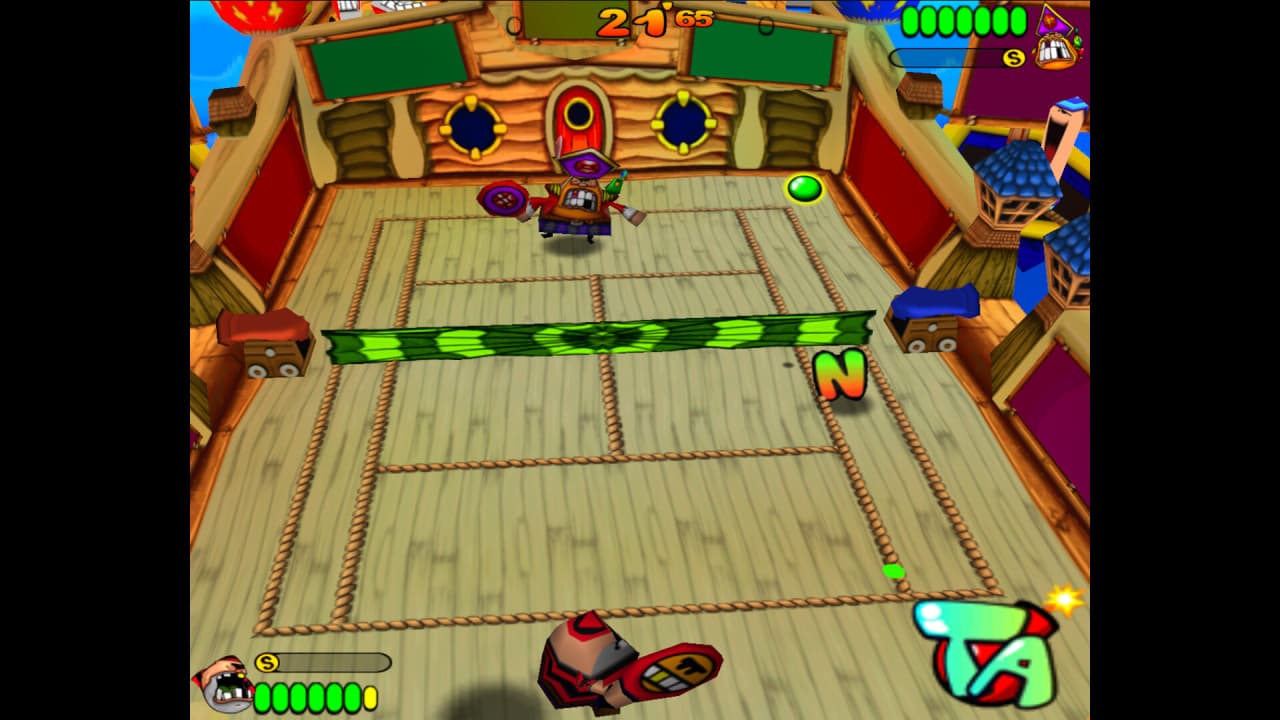 Геймплей в Tennis Antics выходит за рамки простого возврата мяча через сетку. Нужно сосредотачиваться на управлении своей энергией, пытаясь снизить выносливость оппонента. Для этого можно собирать различные предметы, появляющиеся на корте во время игры. Эти коллекционные вещи включают объекты вроде огненных шаров и бомб, предлагая способы повлиять на исход поединка помимо стандартных ударов ракеткой.