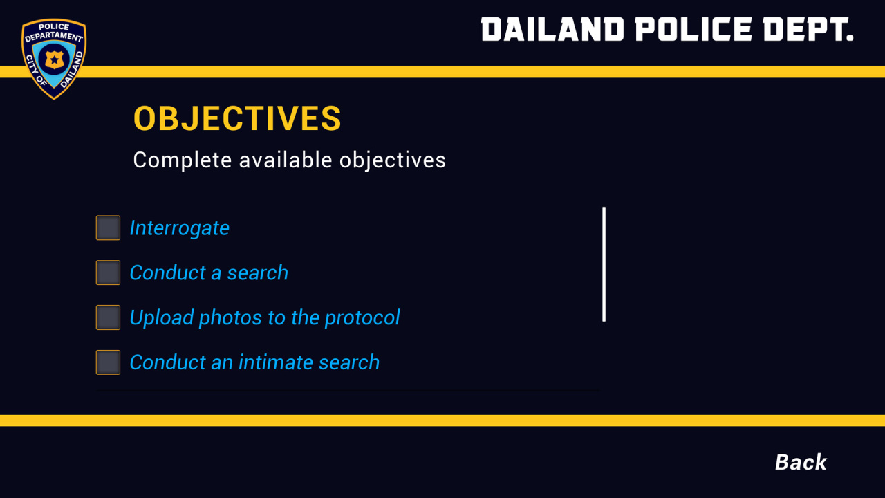 В Gentle Officer ключевая задача — склонить подозреваемую к откровенности. Повышая уровень её неловкости, игрок получает доступ к новому поведению и дополнительной информации. Для этого предусмотрены личные обыски, фотофиксация в разных ракурсах, снятие одежды и контактные формы допроса. Вся активность строится вокруг контроля, давления и реакции задержанной. Внимательность к её поступкам открывает путь к следующим этапам.