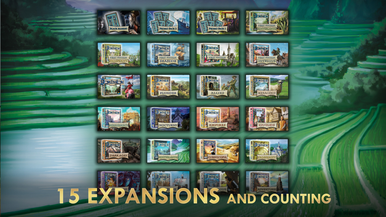 Эти добавления вводят свежие карты и модификации правил, способствуя разнообразию стратегических возможностей. Базовый проект и его расширения предлагают более 500 различных типов карточек, обеспечивая огромное количество потенциальных комбинаций Королевства, исчисляемое более чем 132 септиллионами вариантов. Эта карточная забава поддерживает одиночное прохождение против искусственного интеллекта, предлагая четыре различных уровня сложности. Компонент ИИ совершенствует свои стратегии через самообучение, представляя градуированные вызовы и достижения для освоения.