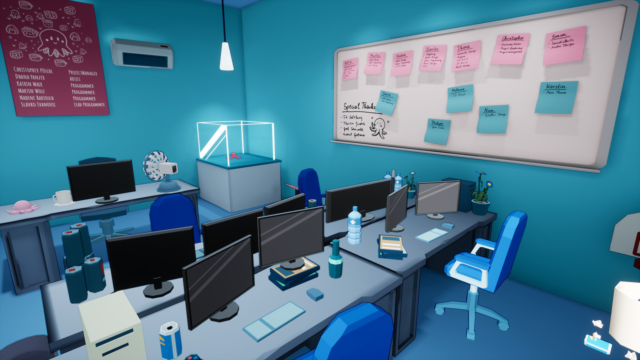 Геймплей в Octarina состоит в контроле осьминога и применении его природной способности прилипать. Эта особенность позволяет персонажу цепляться за поверхности, что упрощает прыжки между платформами и подъемы по стенам. Вы исследуете устройство фабрики в поисках путей к выходу. Взаимодействие включает нажатие кнопок и перемещение разных предметов, найденных на локациях, путем их швыряния — это нужные действия для преодоления преград и продвижения по территории.