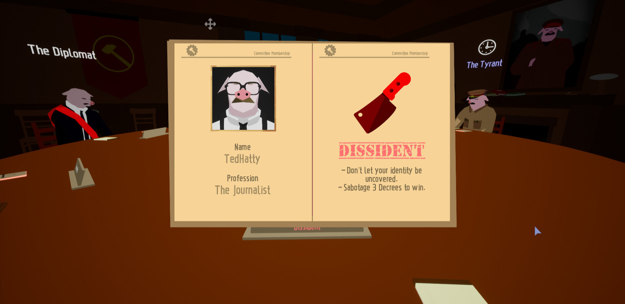 Один игрок исполняет специфическую роль Тирана, задача которого — внимательно следить за действиями остальных членов Комитета. Данное лицо фиксирует наблюдения и сведения, стремясь выявить диссидентов, идущих против существующего порядка. Правитель может выдавать особые разрешения для содействия в поиске предателей, но рискует случайно передать преимущество противнику. Усиливающаяся паранойя со временем вынуждает диктатора проводить чистки, отбирая кандидатов на устранение.