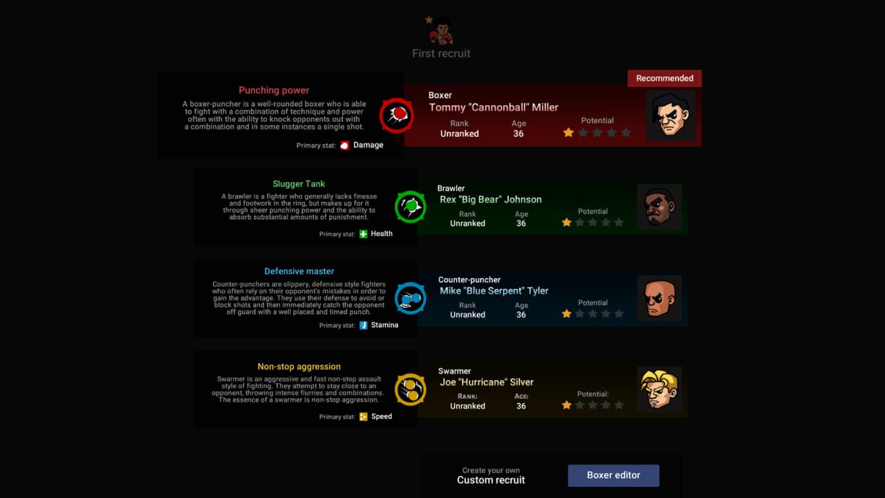 Атлеты обладают уникальными стилями и навыками, основанными на 4 базовых подходах, каждый из которых дополнен расширенными деревьями талантов для углубленной настройки. Можно воспитывать агрессивных свормеров, развивать боксеров с акцентом на силу удара или тренировать мастеров контратаки, использующих ошибки оппонента. Эти стили подкреплены усовершенствованными механиками нанесения ударов и блоков, призванными сбалансировать эффективность разных типов бойцов в поединках. Тактические решения принимаются и во время самих поединков через новую систему подсказок у ринга между раундами. Эта система дает возможность влиять на ход схватки в зависимости от ситуации.