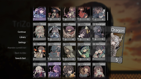 Trizon представляет собой проект, построенный на принципах создания колод в рамках системы развития в стиле roguelike. Центральной особенностью является возможность для игрока объединять любые две доступные карты, процесс, который создает новые тактические возможности. Он берет на себя роль индивидуума, сбежавшего из заточения, который теперь стремится продвигаться вперед и раскрыть скрытую правду.
