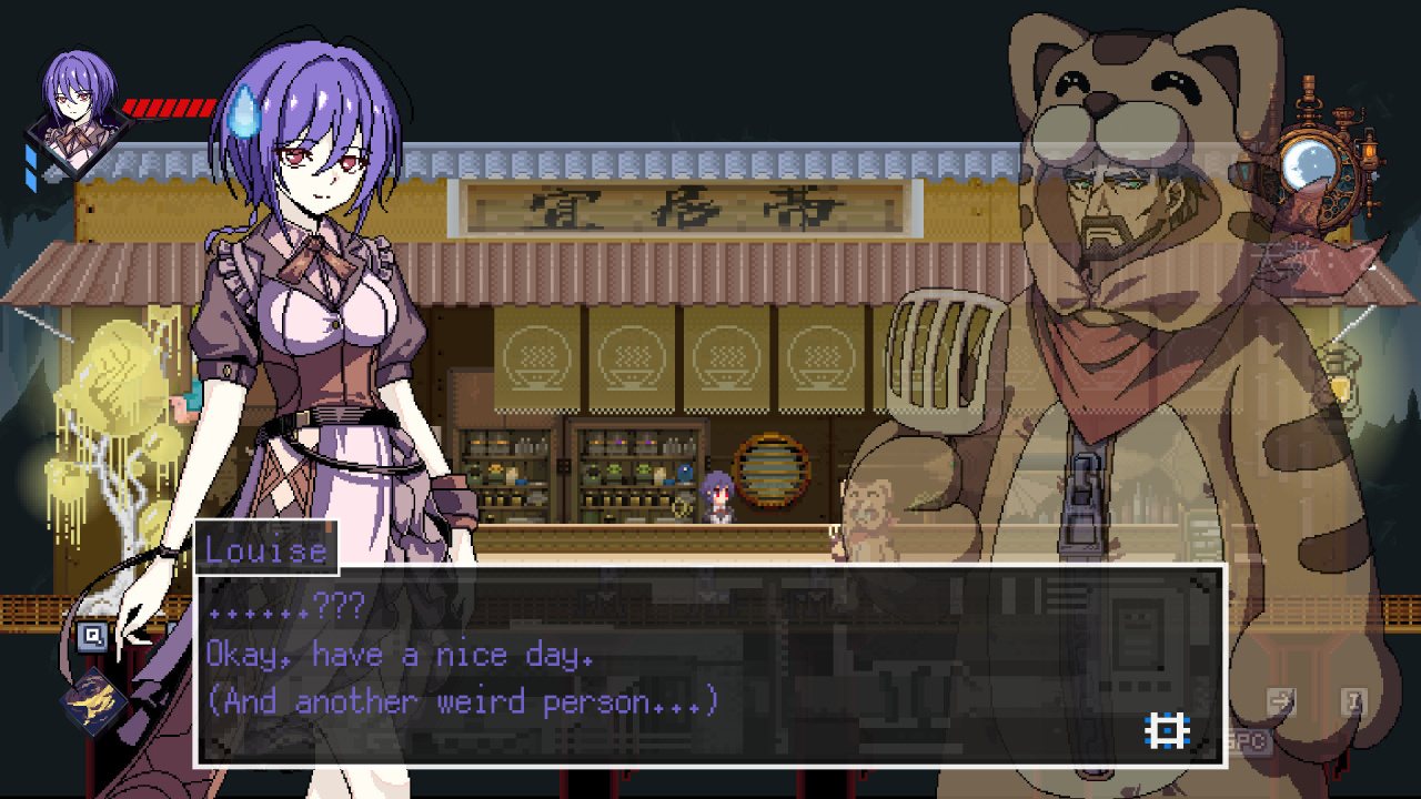 Луиза занимается своим заведением с приходом ночи, подавая угощения посетителям и разыскивая сведения об исчезновении сестры. Общение с клиентурой заведения приоткрывает их жизненные пути и предыстории. Эти разговоры, вкупе с сюжетными фрагментами из устройств эхо-системы и особенностями локаций, встречающимися на карте, содействуют играющему в восстановлении картины произошедшего с сестрой на Планете E1d0r4d0. Данный проект прибегает к черному юмору в своей манере изложения.
